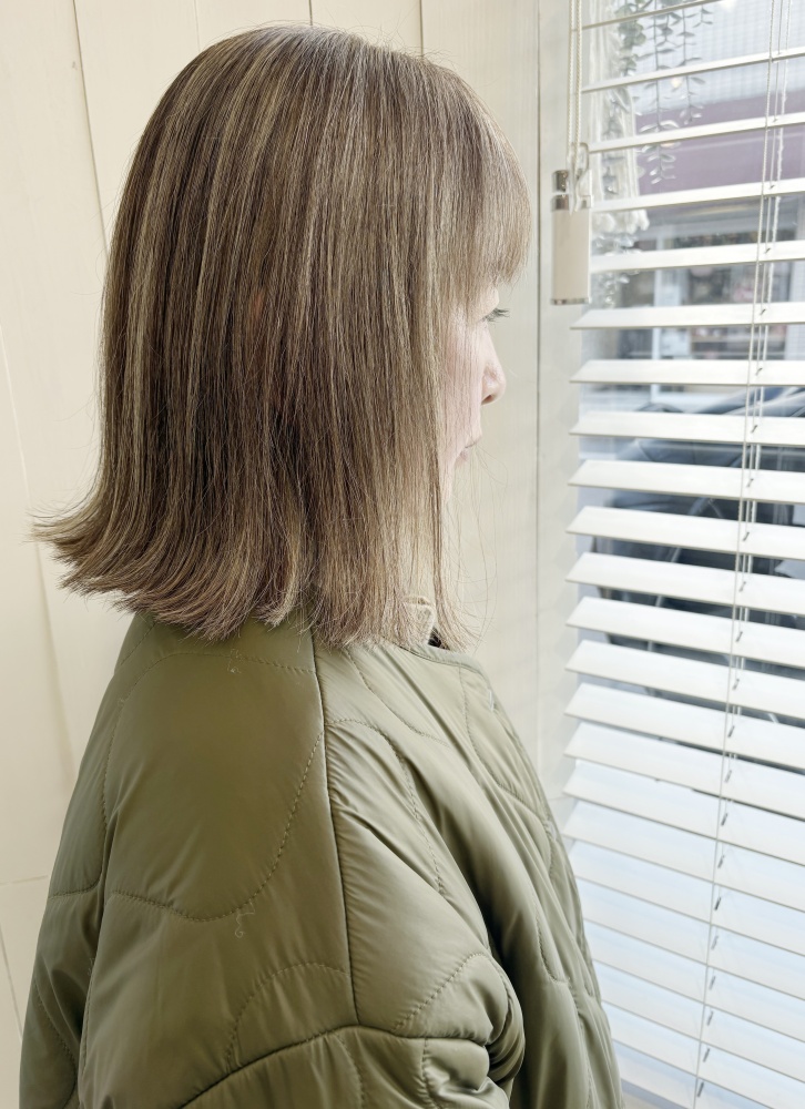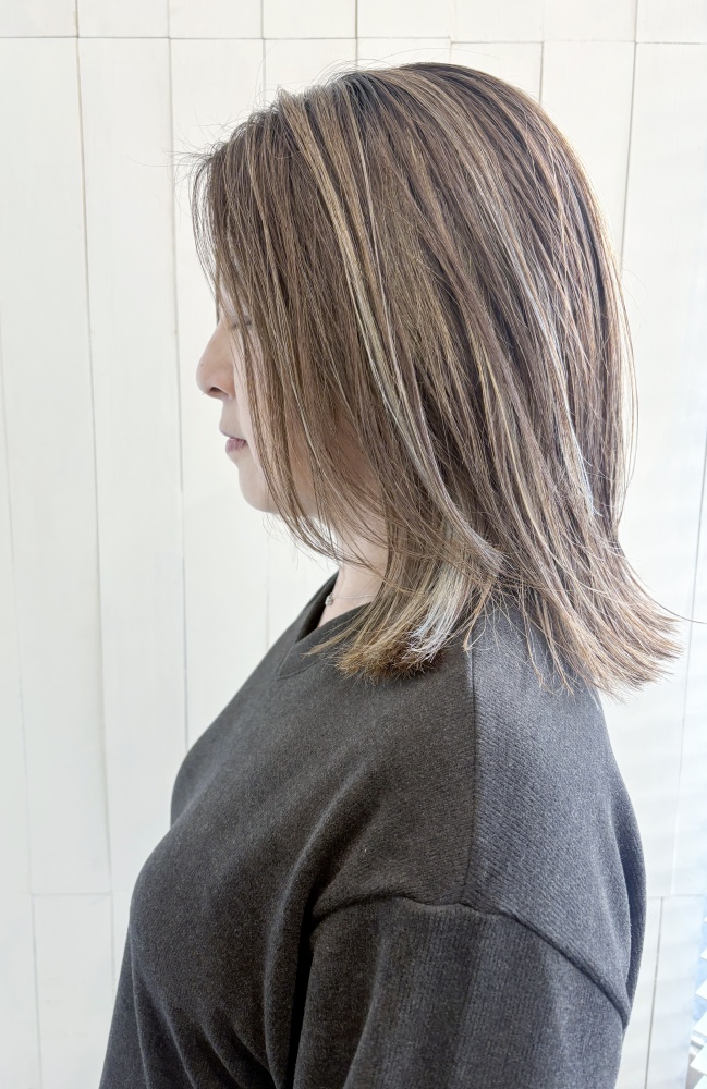 ベースのカラーはいつもしてないんですが、かれこれ4〜5年担当させてもらってまして毎回ハイライトカラーを繰り返しているのでいい味がでていますよね